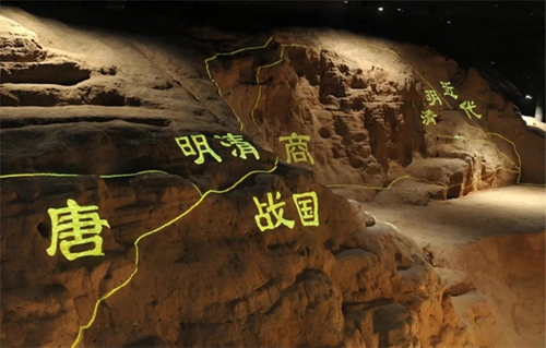 第二展廳部分場景復(fù)原運(yùn)用了三維立體掃描、建模和 3D 打印的新技術(shù),展示鄭州商都發(fā)現(xiàn)的重要遺跡,如紫荊山路南城垣斷面展示,夕陽樓人骨祭祀坑、向陽回族食品廠青銅器窖藏坑展示等。三維立體掃描和3D打印的技術(shù)運(yùn)用,充分還原遺跡和考古發(fā)掘現(xiàn)場,最大限度保護(hù)文物和文化遺產(chǎn),新技術(shù)的運(yùn)用也減少了展廳施工的難度,節(jié)省資源和成本,視覺感官上無差別的遺跡展示,帶給觀眾親臨現(xiàn)場的真實(shí)感和體驗(yàn)感。