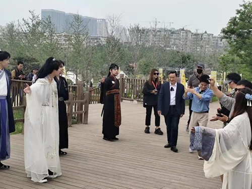 鄭州商都國(guó)家考古遺址公園佇立眼前,3600年的商代城墻默候腳下,《詩(shī)經(jīng)·商頌》的傳奇在鄭州流傳至今,與遠(yuǎn)處鱗次櫛比的現(xiàn)代化高樓古今交融。遺址公園內(nèi),商都城墻遺址巍然屹立,以淺黃色為背景的“巍巍亳都 活力管城”潮流青年藝術(shù)節(jié)道旗隨風(fēng)搖曳。該藝術(shù)節(jié)正在公園內(nèi)緊張籌備,將于4月29日至5月5日舉辦。