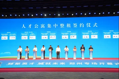 下午,第七屆中國·河南招才引智創(chuàng)新發(fā)展大會鄭州專場盛大開幕。在開幕式上,舉行了人才公寓集中整租簽約儀式。