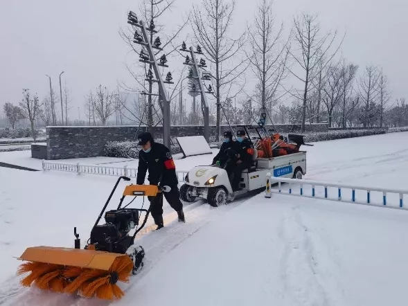 1月21日暴雪如期而至,鄭州奧體中心立刻根據(jù)雪情安排作業(yè)路段及區(qū)域,投入人員百余人、輔助工具近200個(gè),各類除雪輔助車輛5輛,融雪劑2噸,第一時(shí)間清除機(jī)動(dòng)車道、步道上的積雪,確保道路安全不結(jié)冰。對園區(qū)出入口、園區(qū)內(nèi)外環(huán)主要道路、建國飯店門廳、疫苗接種中心、辦公區(qū)域周邊做好除雪、防滑措施。